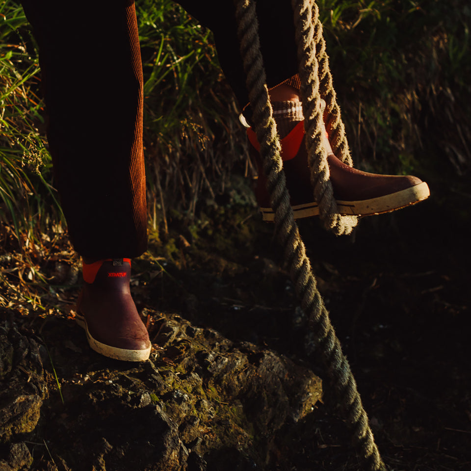 Introducing the Camp Collection! This collection of Ankle Deck Boots is specifically built for life at the camp site. 100% waterproof and complete with slip resistant and non-marking outsoles, they are still ready for the boat too. Constructed with a ripstop quarter panel, a new outsole tread pattern, and a faux shearling lining, these are the ultimate camping boots. Whether you're fishing, foraging, or sitting around the fire, the Camp Collection ADBs are ready for your next adventure.