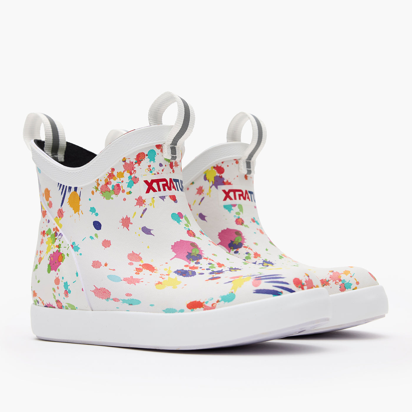 The Ankle Deck Boot is one of XTRATUF’s most iconic silhouettes due to its versatile design and Alaska proven performance. Now available in popular kids sizes for the toughest youth out there. The Kids ADB is the first slip resistant, non-marking rubber boot on the market designed specifically for young anglers. This version features our new paint splatter pattern.