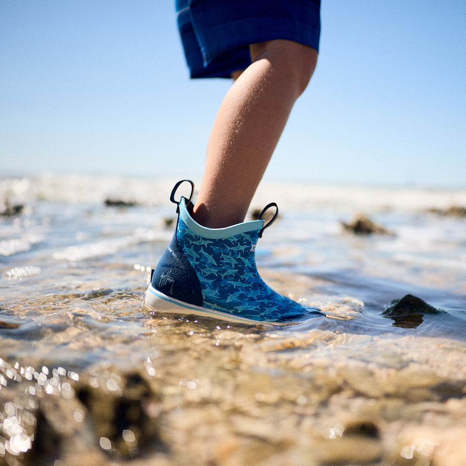 The Ankle Deck Boot is one of XTRATUF’s most iconic silhouettes due to its versatile design and Alaska proven performance. Now available in popular kids sizes for the toughest youth out there. The Kids ADB is the first slip resistant, non-marking rubber boot on the market designed specifically for young anglers. This style features Guy Harvey's original Shark camo.