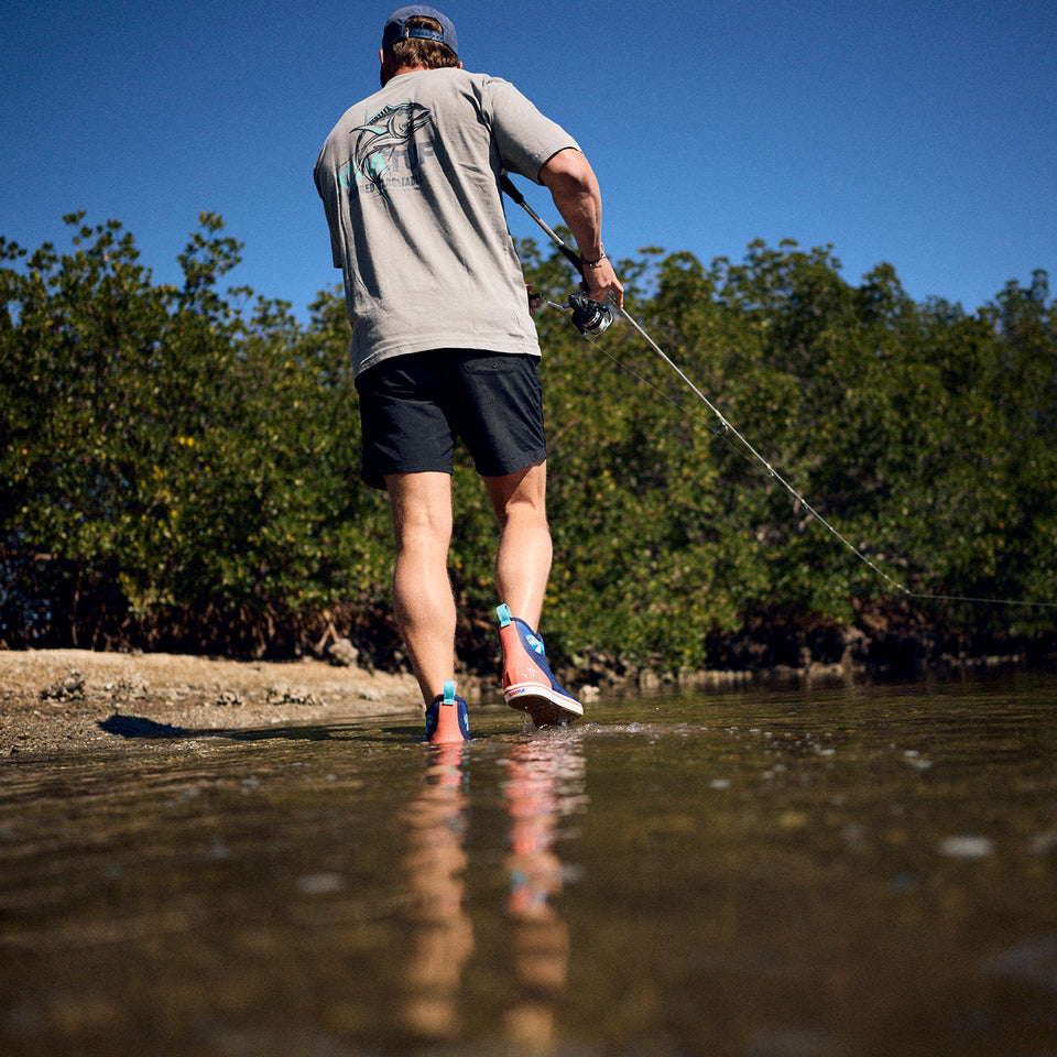 The Ankle Deck Boot collection has been crafted specifically for off-shore anglers. Anglers are athletes, and like any athlete they demand the best footwear to help them perform at a high level. We've created a lightweight design with the same slip-resistant Chevron outsole found on our Legacy boots. The ADB is a great option for anyone looking for non-slip and waterproof footwear for live on land or on the water and this version features Guy Harvey's original Shark print. For those looking for a commercial grade ankle height deck boot please search for the Wheelhouse Boot.