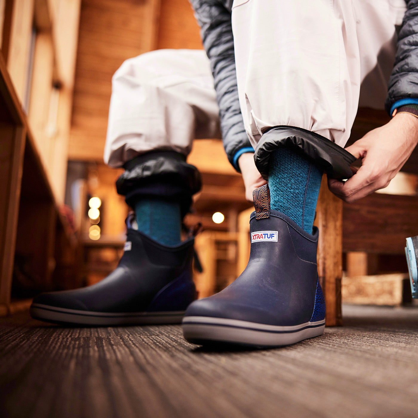 XTRATUF® Deck Boots have been crafted specifically for sport and recreational fishermen. Anglers are athletes and they need proper footwear to help them perform at their best. We’ve created lightweight silhouettes with the same XTRATUF® non-marking, slip-resistant Chevron outsole as our iconic Legacy boot. This version features a faux shearling liner for added warmth, a color detail at the heel and printed pull tabs.