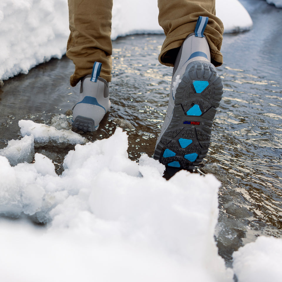 The ADB ICE was designed to work on wet ice while simultaneously being able to transition to other wet surfaces. This new boot features Glacier Trek Pro, our proprietary ice gripping compound paired with an SRC rated slip-resistant rubber. The ADB ICE has a lightweight rubber upper that is 100% waterproof and includes a faux shearling lining for quick drying comfort and warmth.