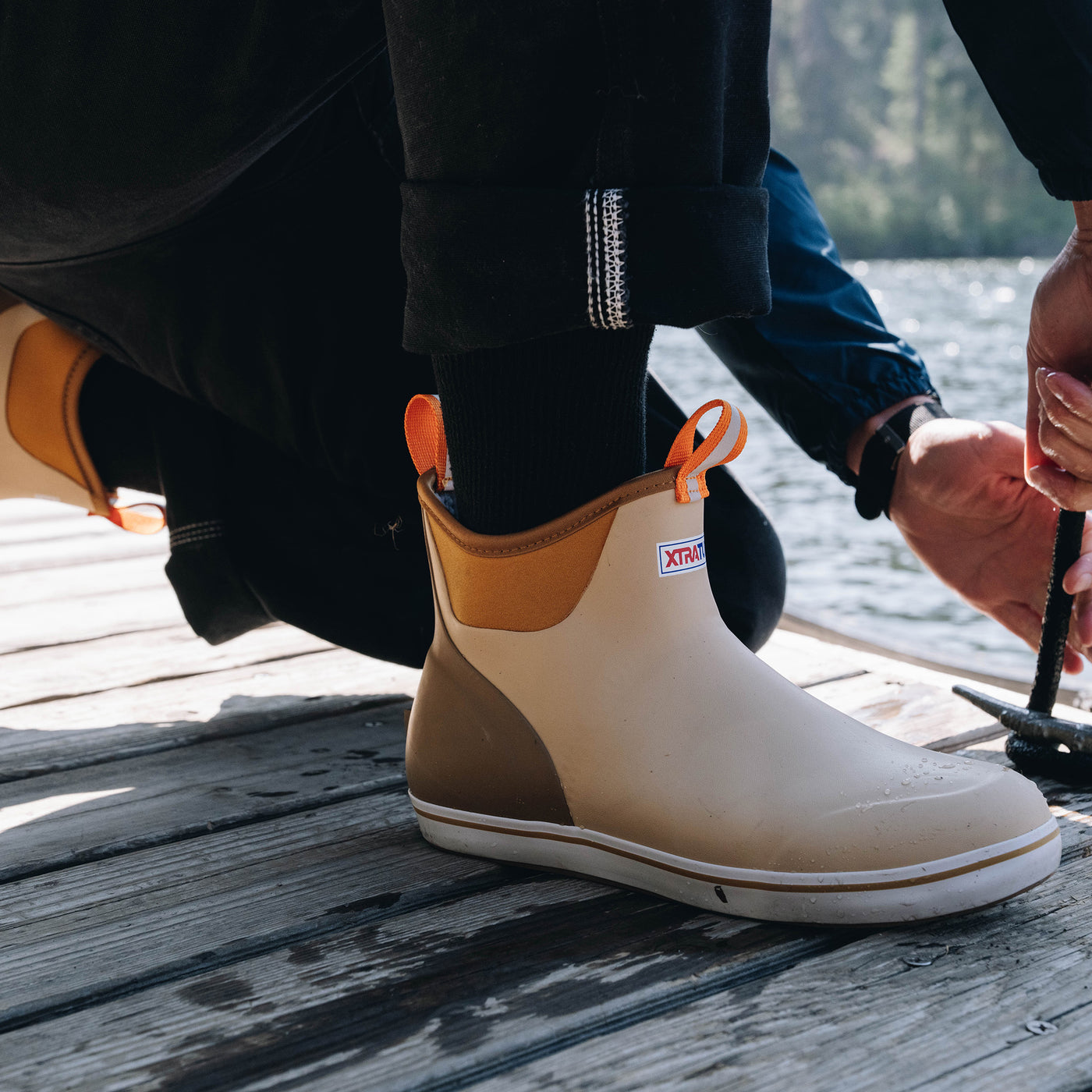 The Ankle Deck Boot collection has been crafted specifically for off-shore anglers. Anglers are athletes, and like any athlete they demand the best footwear to help them perform at a high level. We've created a lightweight design with the same slip-resistant Chevron outsole found on our Legacy boots. The ankle deck boot is a great option for any on-the-water athlete looking for protection with slip-on-and-go styling.