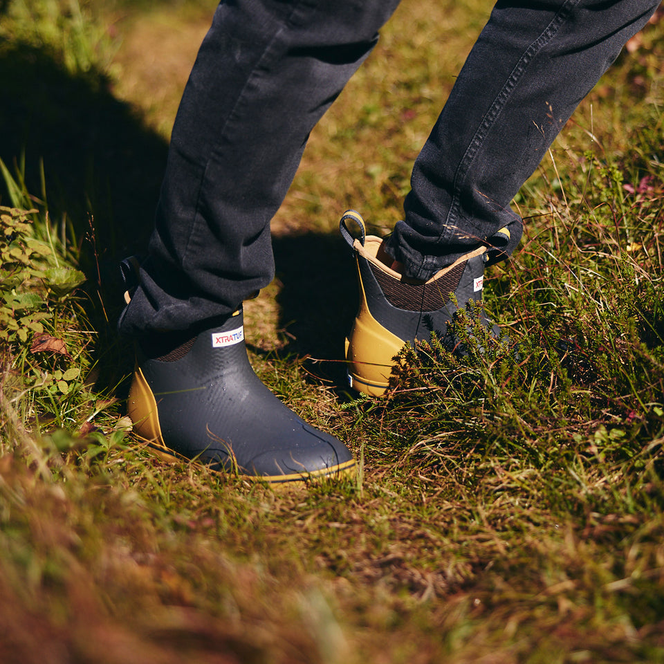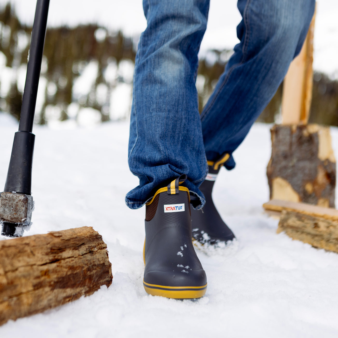 The Ankle Deck Boot collection has been crafted specifically for off-shore anglers. Anglers are athletes, and like any athlete they demand the best footwear to help them perform at a high level. We've created a lightweight design with the same slip-resistant Chevron outsole found on our Legacy boots. The 6" ankle deck boot is a great option for any on-the-water athlete looking for protection with slip-on-and-go styling. This boot is constructed with hand-layed rubber, and so not classified as a commercial grade boot. For those looking for a commercial grade ankle height deck boot please search for the Wheelhouse Boot.