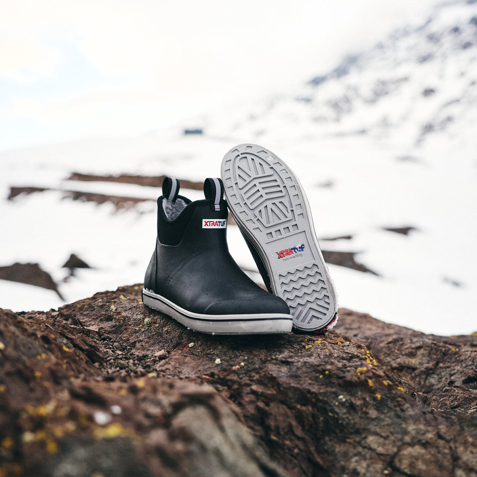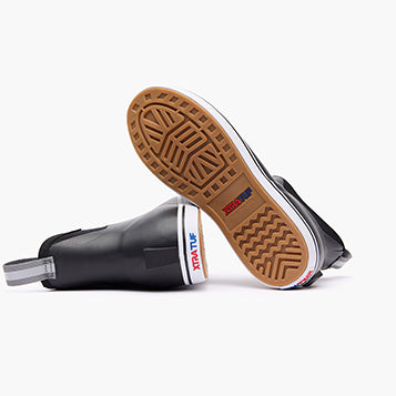 Due to popular demand, this black ankle deck boot has been crafted specifically for a female fit. Anglers are athletes, and like any athlete they need the best footwear to help them perform at a high level. We've created a lightweight design with the same slip-resistant Chevron outsole found in our Legacy boots. The performance ankle deck boot is the perfect boot for any on the water athlete looking for protection with slip-on-and-go styling. This boot is constructed with hand-layed rubber, therefore it's not a commercial grade boot.