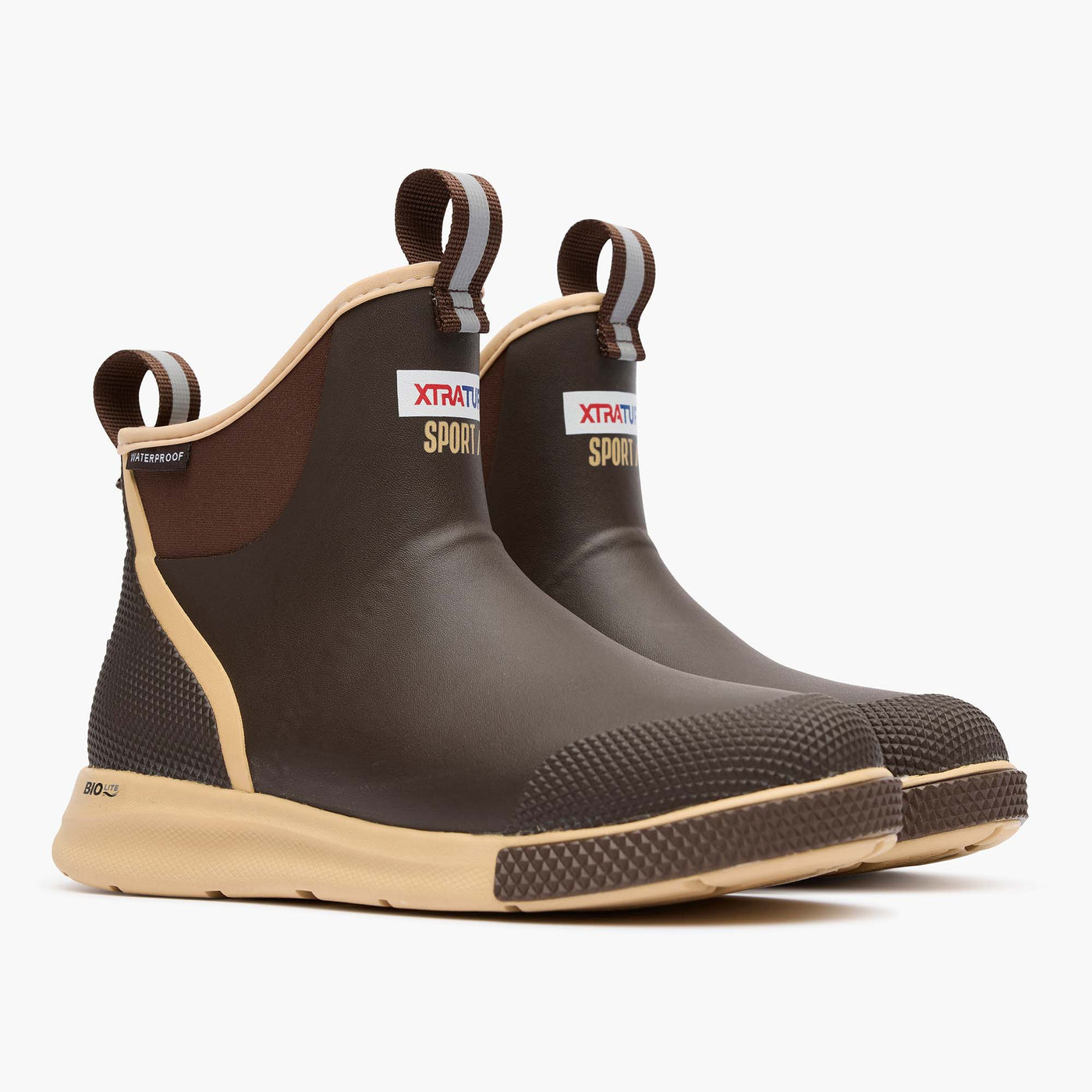 The Ankle Deck Boot Sport provides next level comfort and slip-resistance to the iconic XTRATUF ADB. The ADB Sport is 30% lighter than other 6-inch boots in this category and is built with on a high-performance BioLite foam outsole which is ultra-durable and slip-resistant and still non-marking. This boot delivers the comfort and agility of a sneaker with long cushion life and high energy return, all while offering the same traction benefits of a full rubber boot. Now available in the iconic XTRATUF brown and tan colorway.