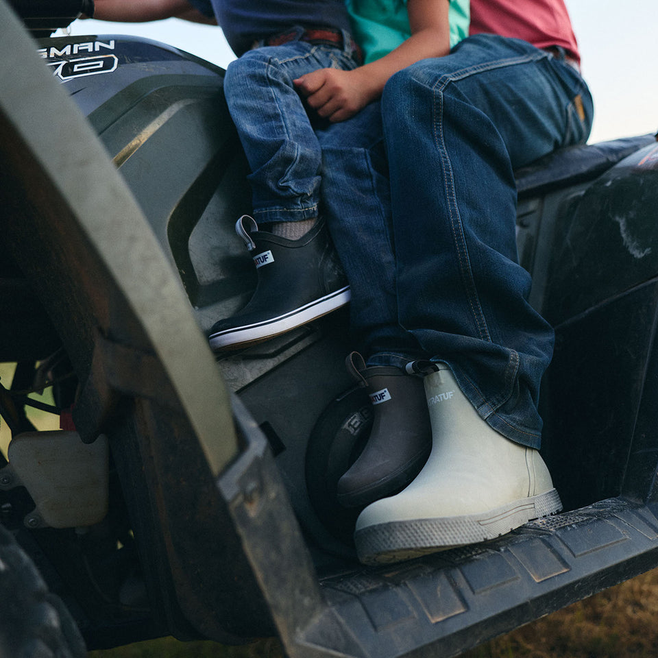 The Ankle Deck Boot has quickly become one of XTRATUF’s most iconic silhouettes due to its versatile design and Alaska proven performance. Now available in popular kids sizes for the toughest youth out there. The Ankle Deck Boot Kids is the first SRA slip resistant, non-marking rubber boot on the market designed specifically for young anglers.